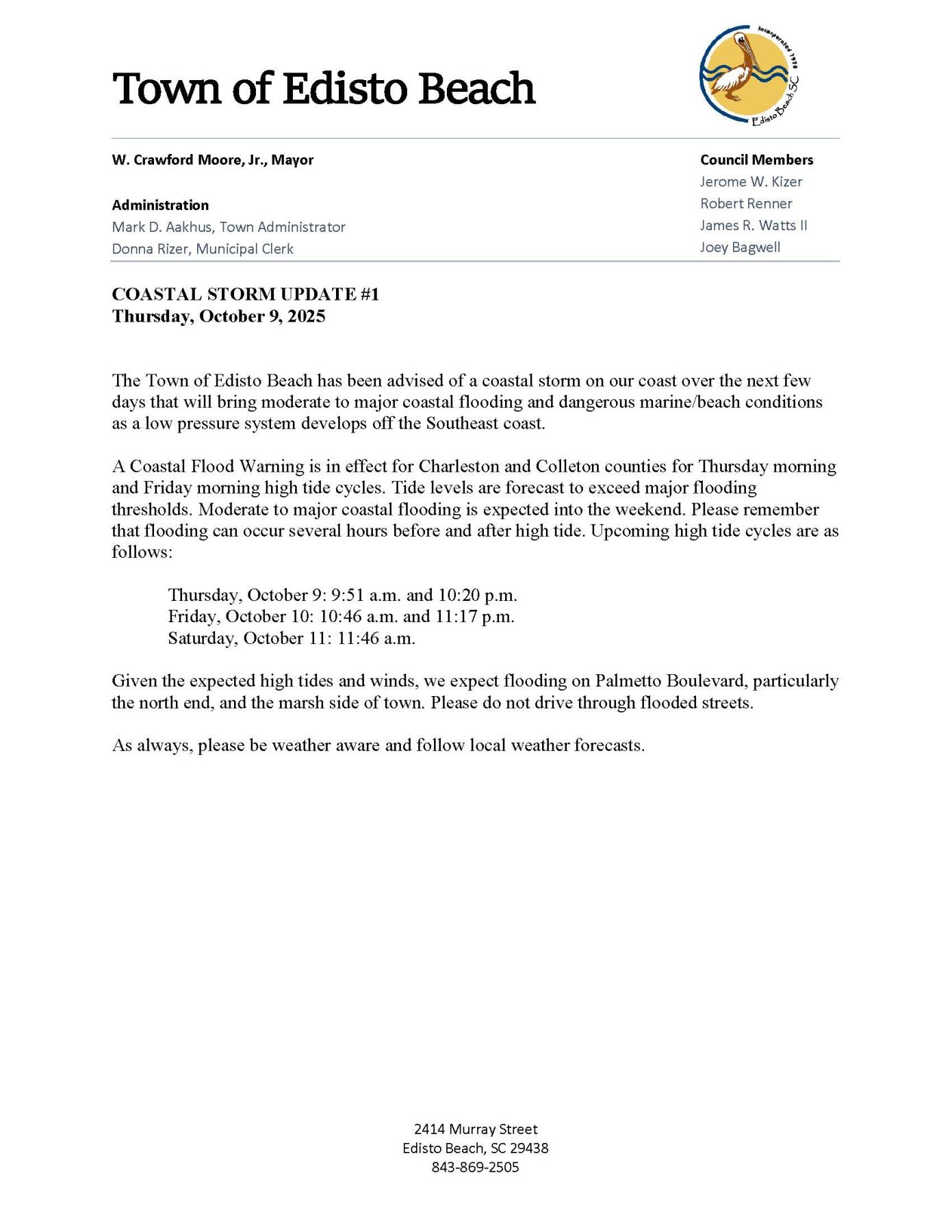 Coastal Storm Update #1 - October 9, 2025