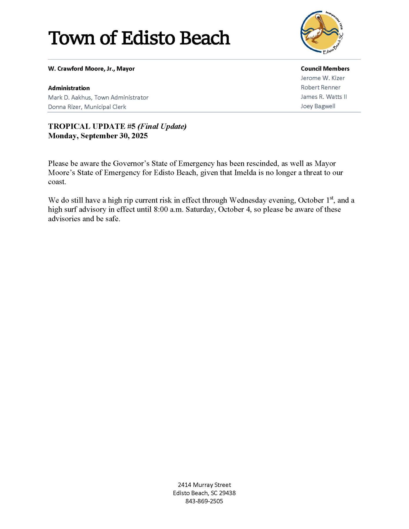 Tropical Update #5 (Final Update) - September 30, 2025